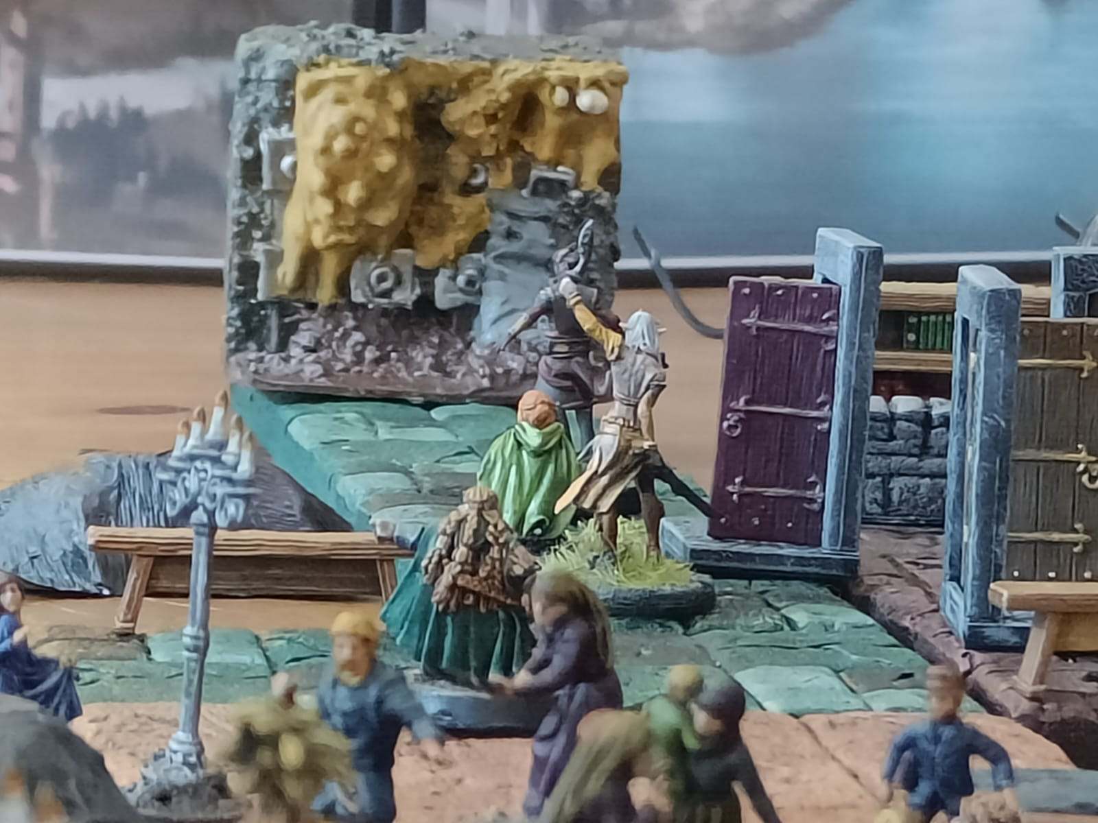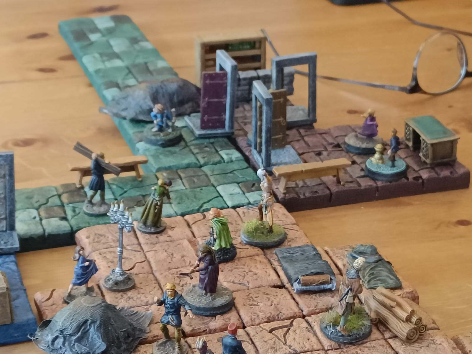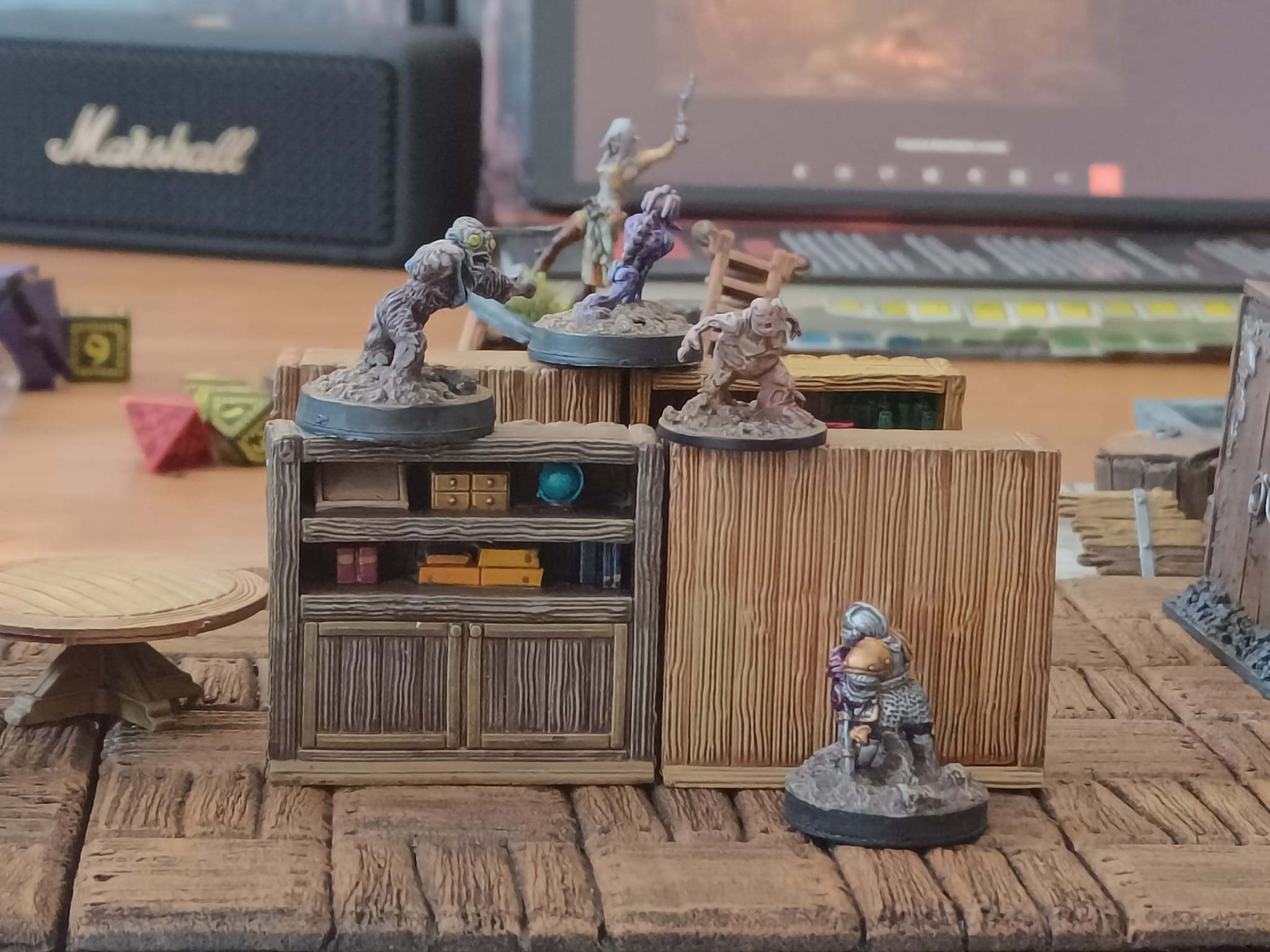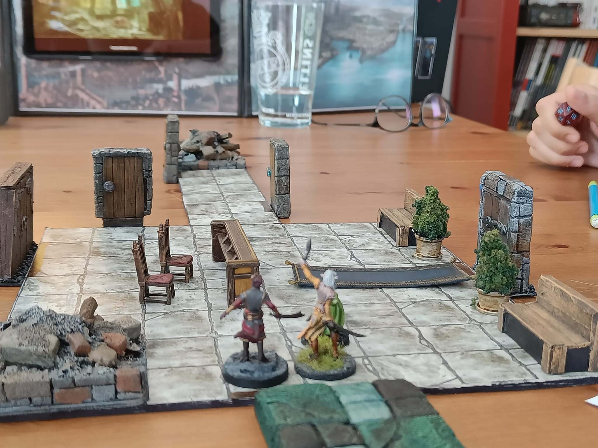 J'avais malgré tout préparé une map, décorée de plusieurs décors, et des figurines pour chaque PNJ. Cela a aidé tout le monde à s'immerger et à savoir qui est qui.