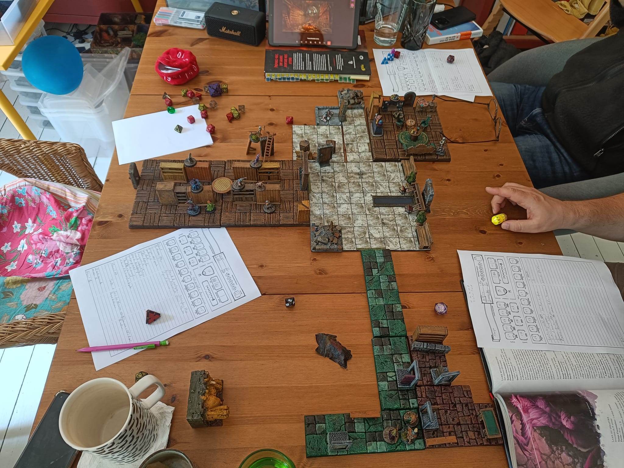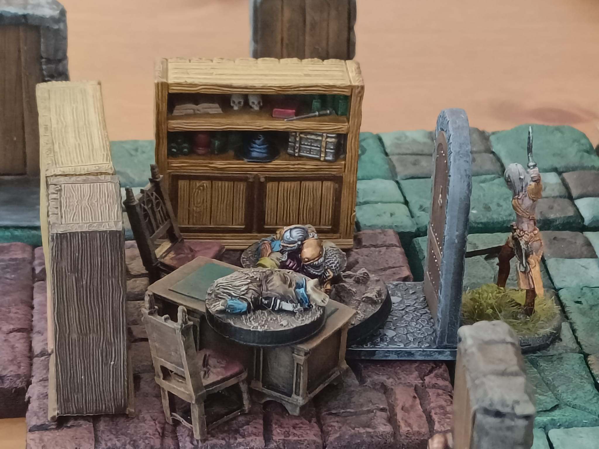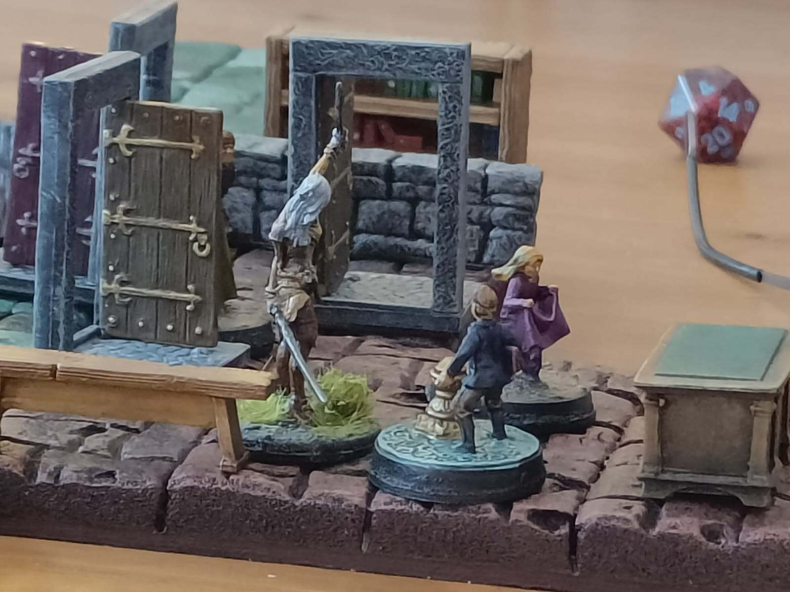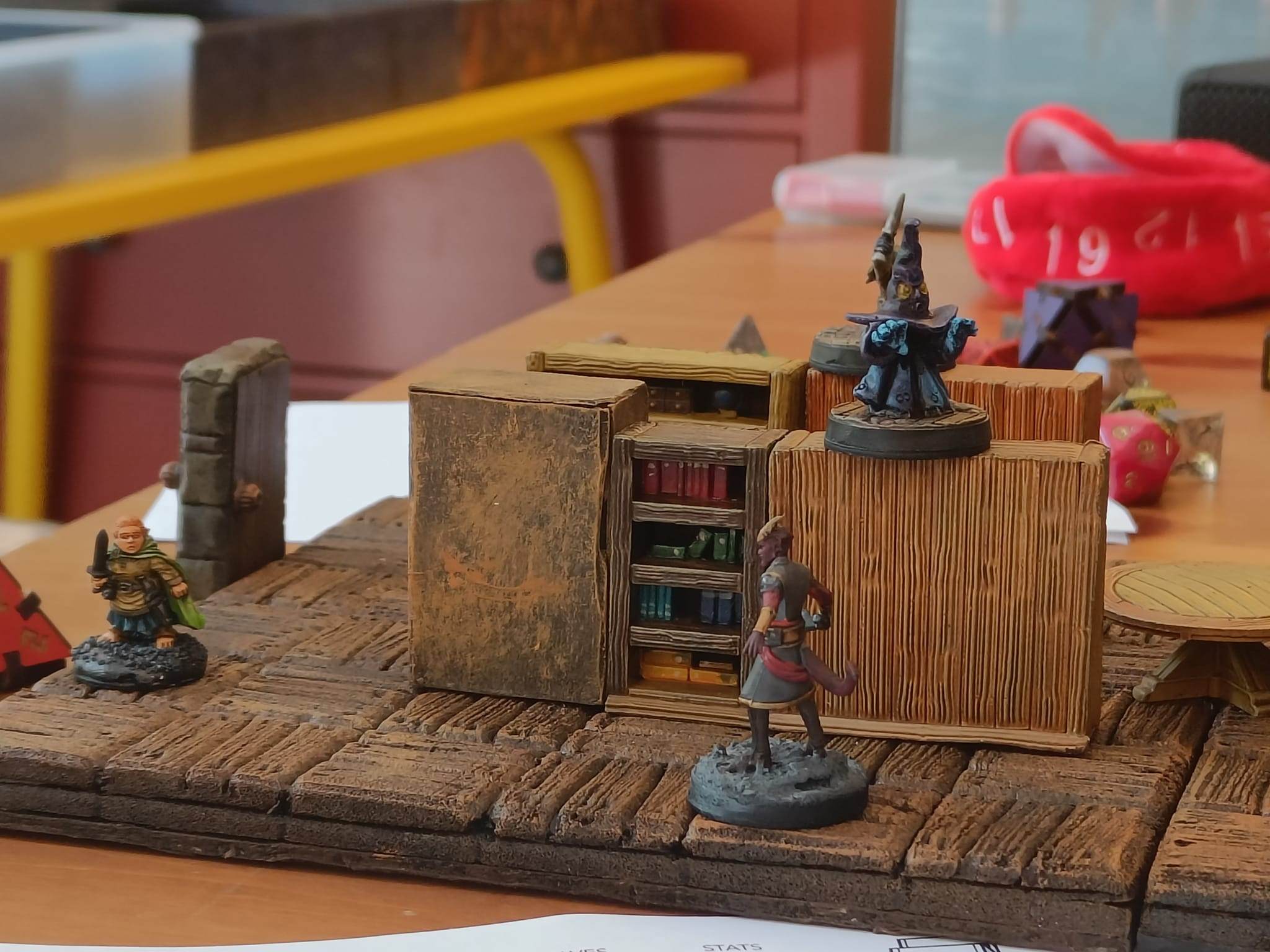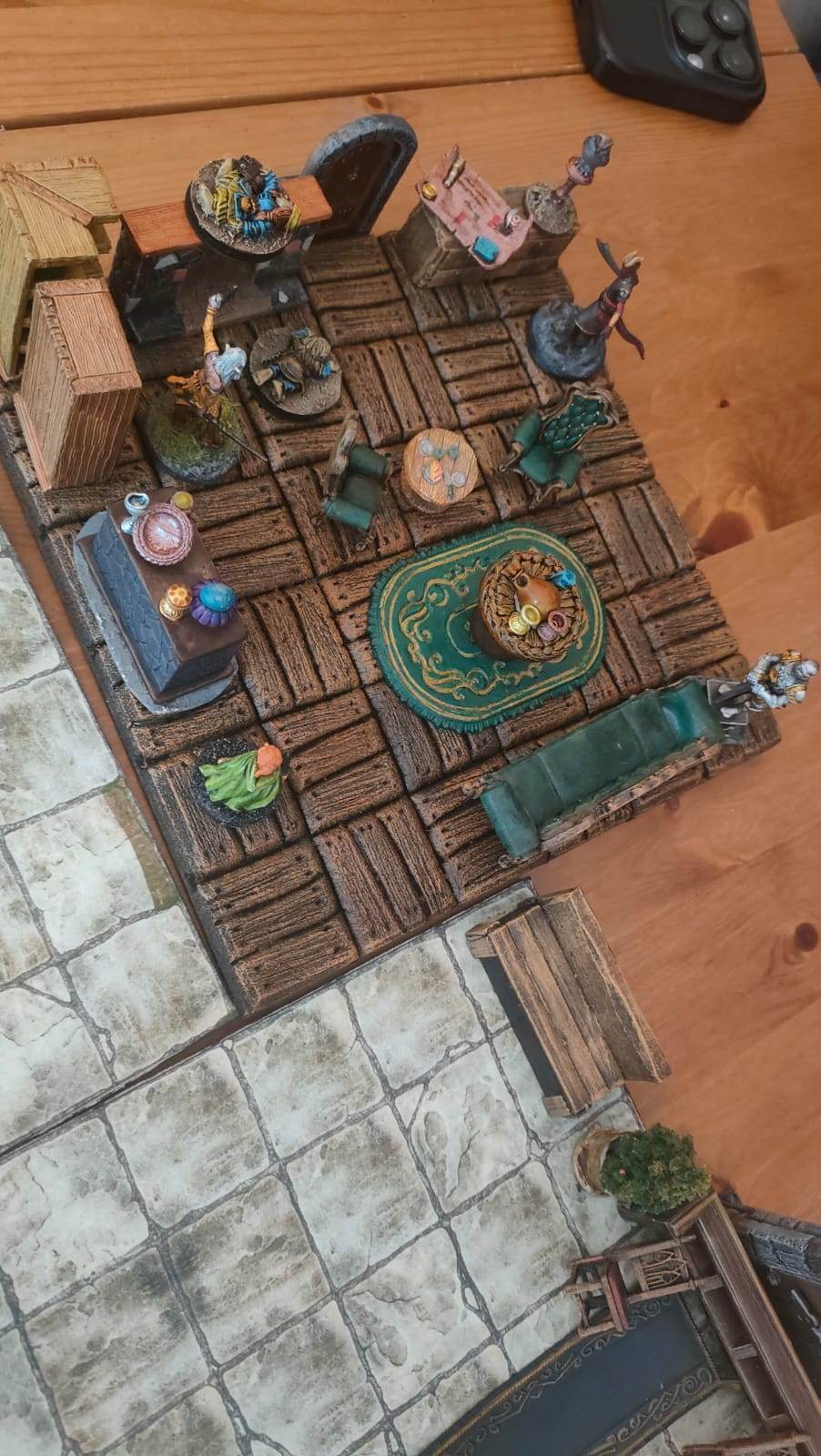 J'avais malgré tout préparé une map, décorée de plusieurs décors, et des figurines pour chaque PNJ. Cela a aidé tout le monde à s'immerger et à savoir qui est qui.