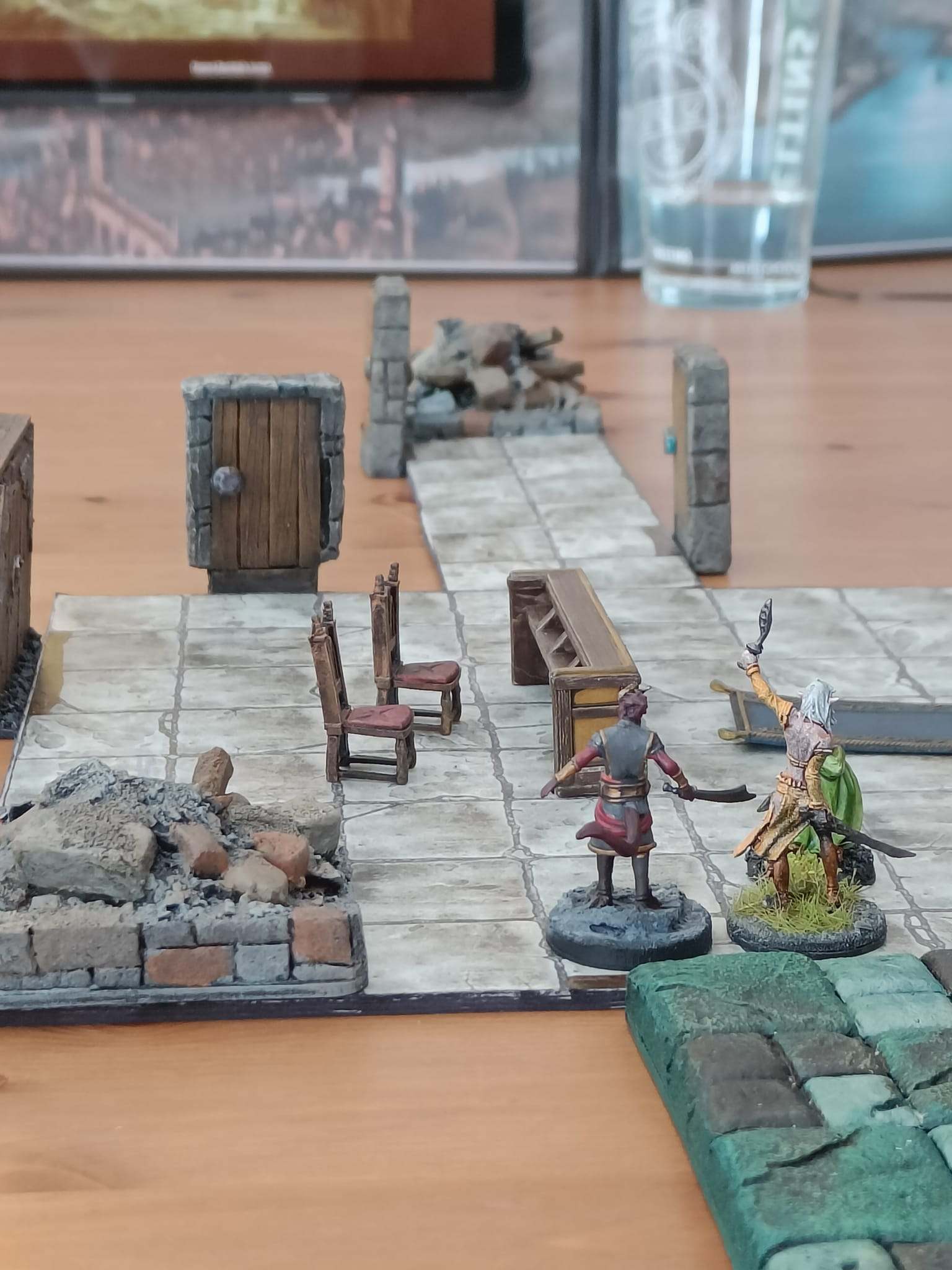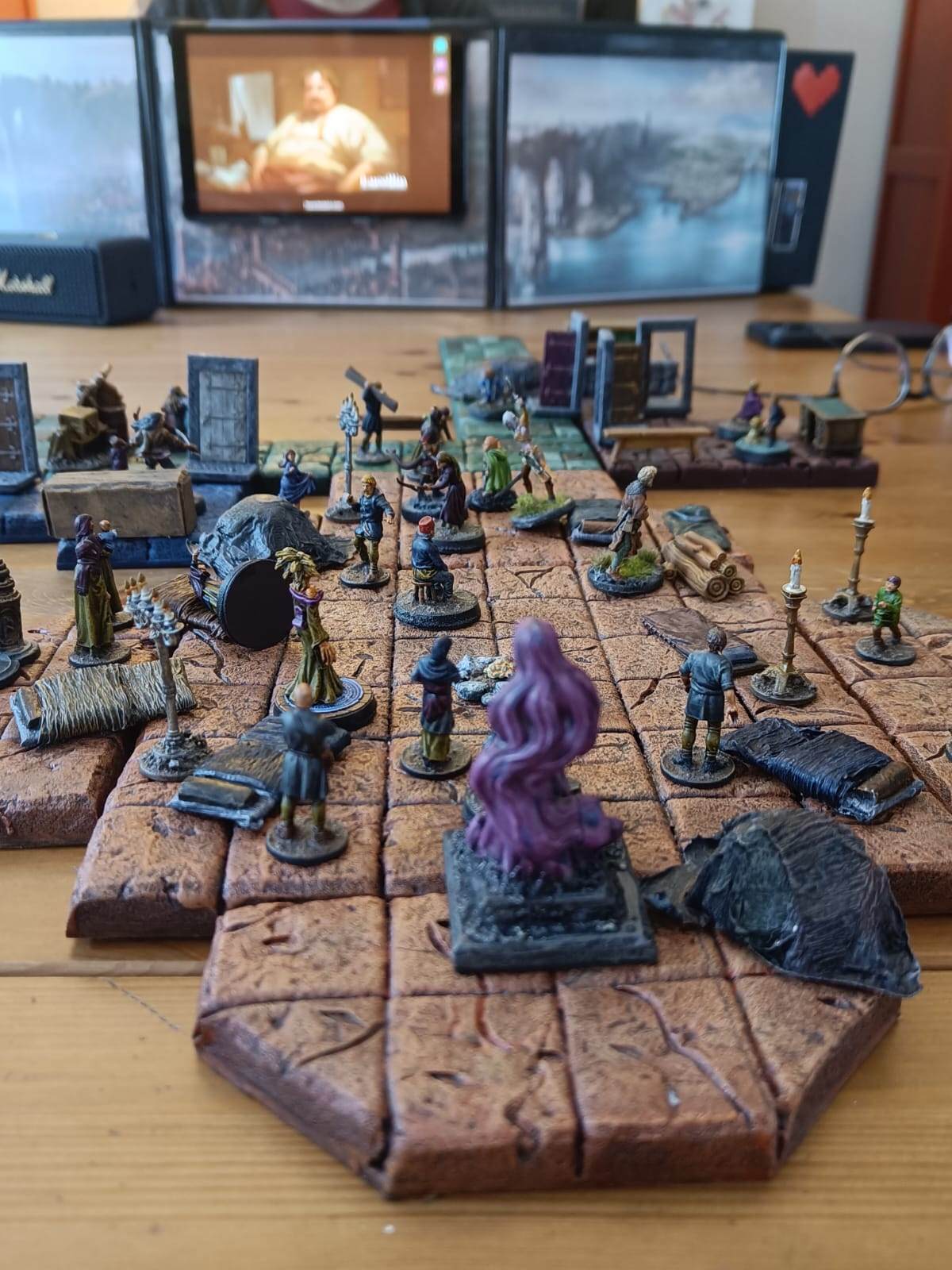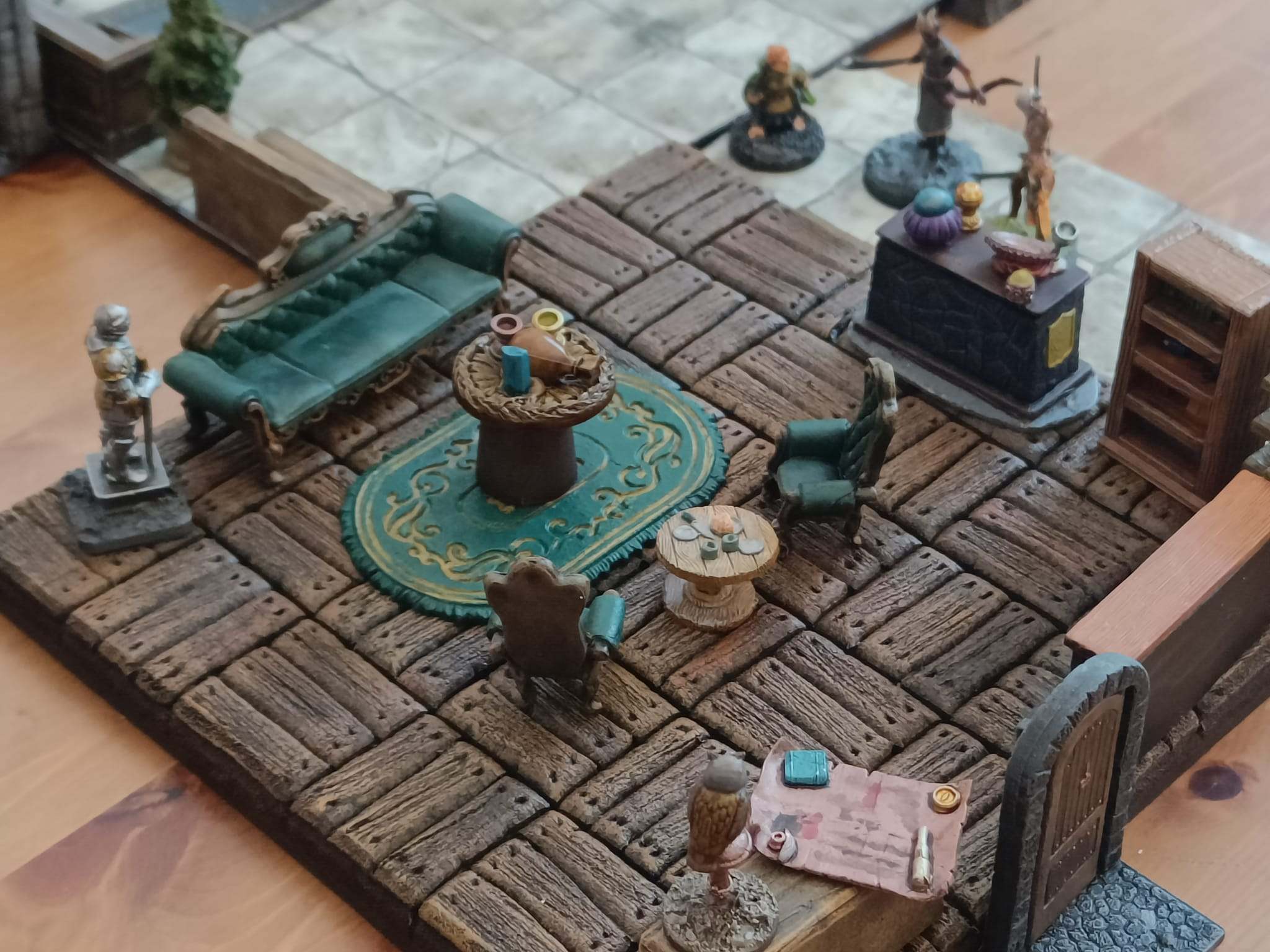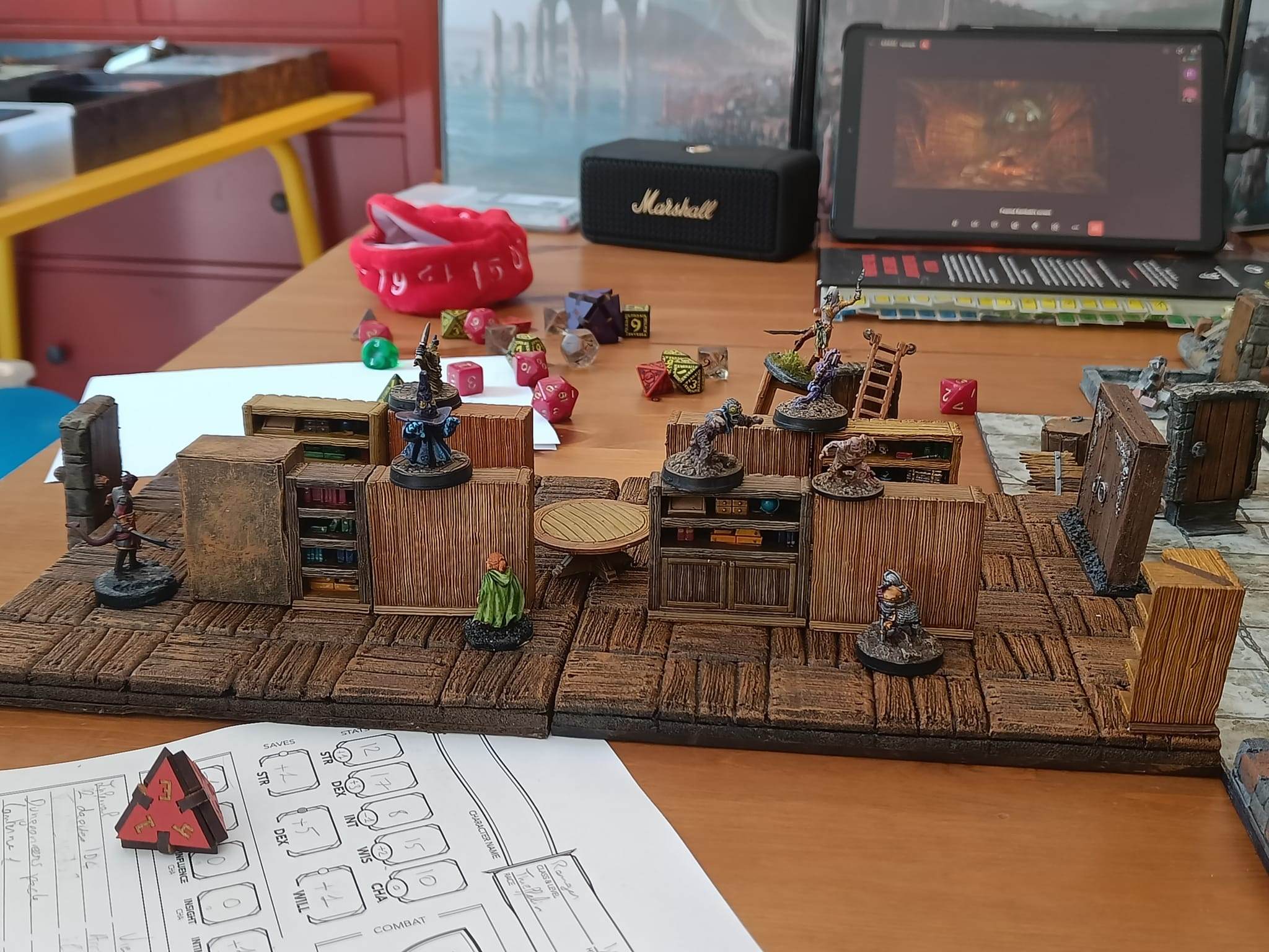 J'avais malgré tout préparé une map, décorée de plusieurs décors, et des figurines pour chaque PNJ. Cela a aidé tout le monde à s'immerger et à savoir qui est qui.
