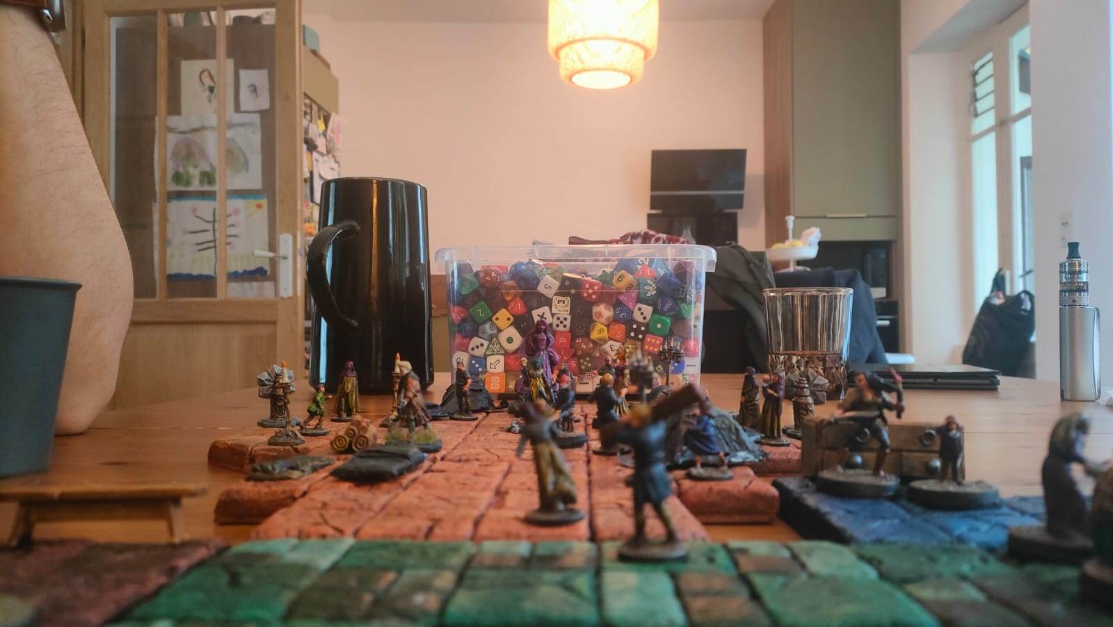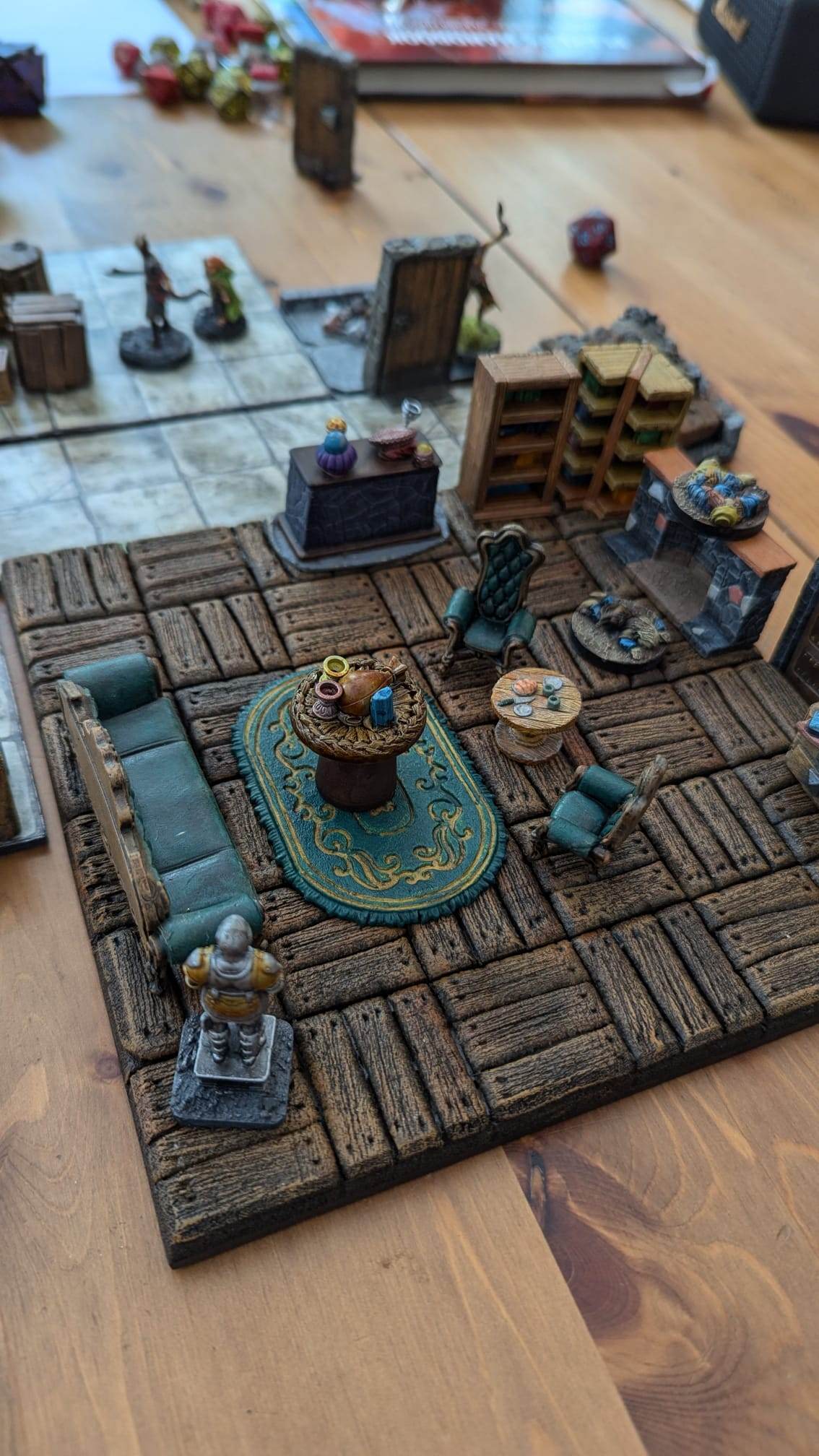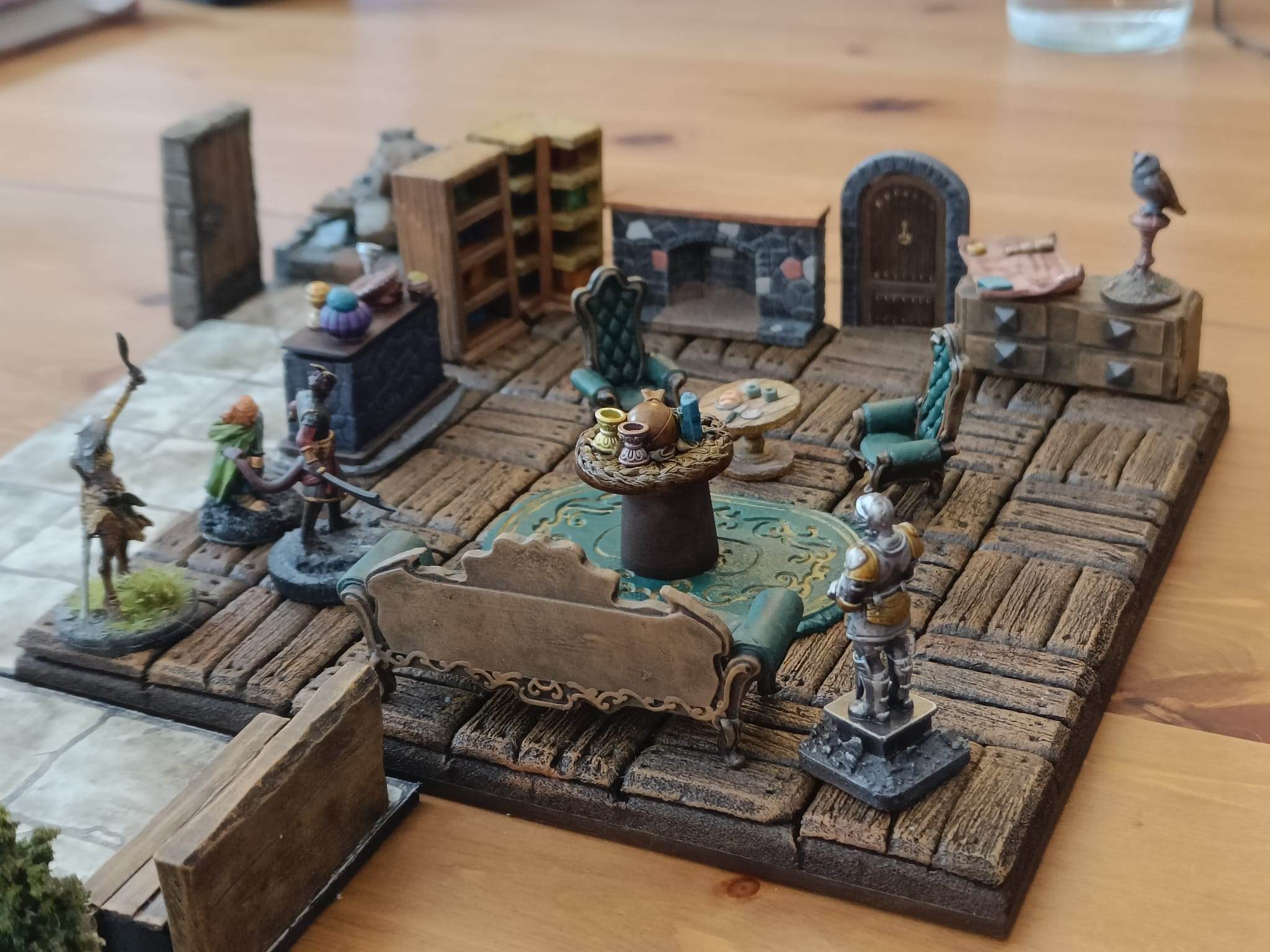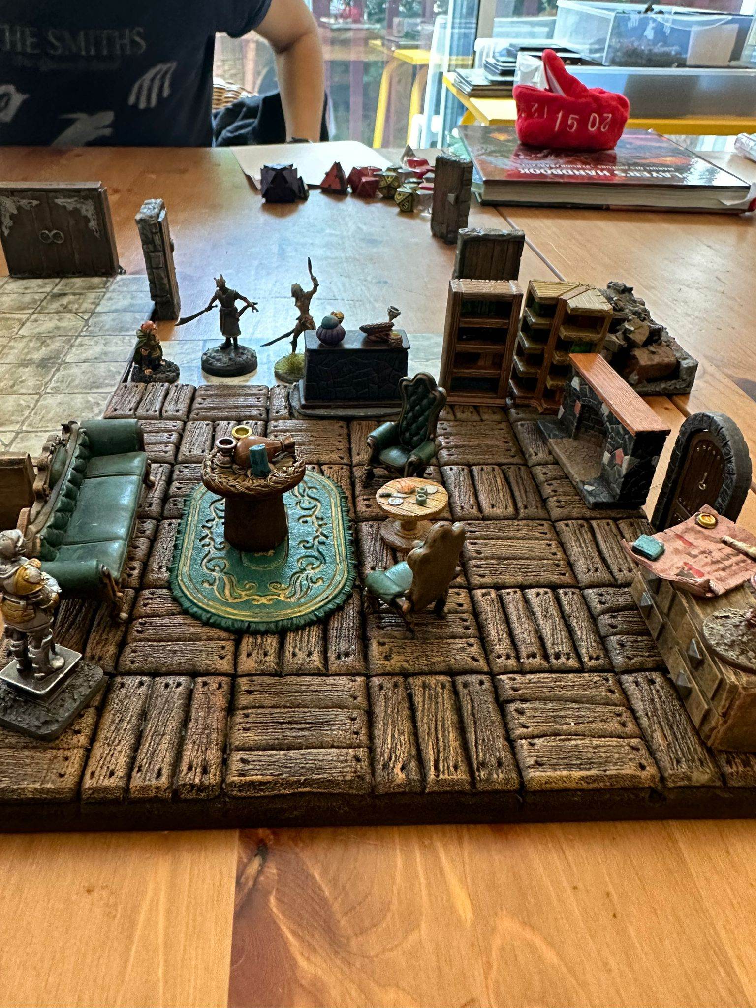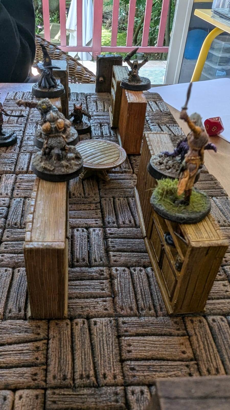 J'avais malgré tout préparé une map, décorée de plusieurs décors, et des figurines pour chaque PNJ. Cela a aidé tout le monde à s'immerger et à savoir qui est qui.