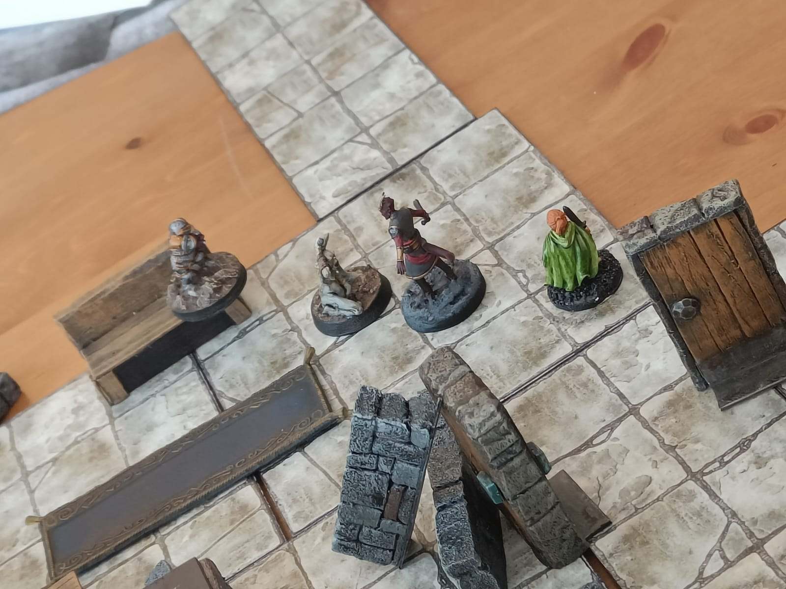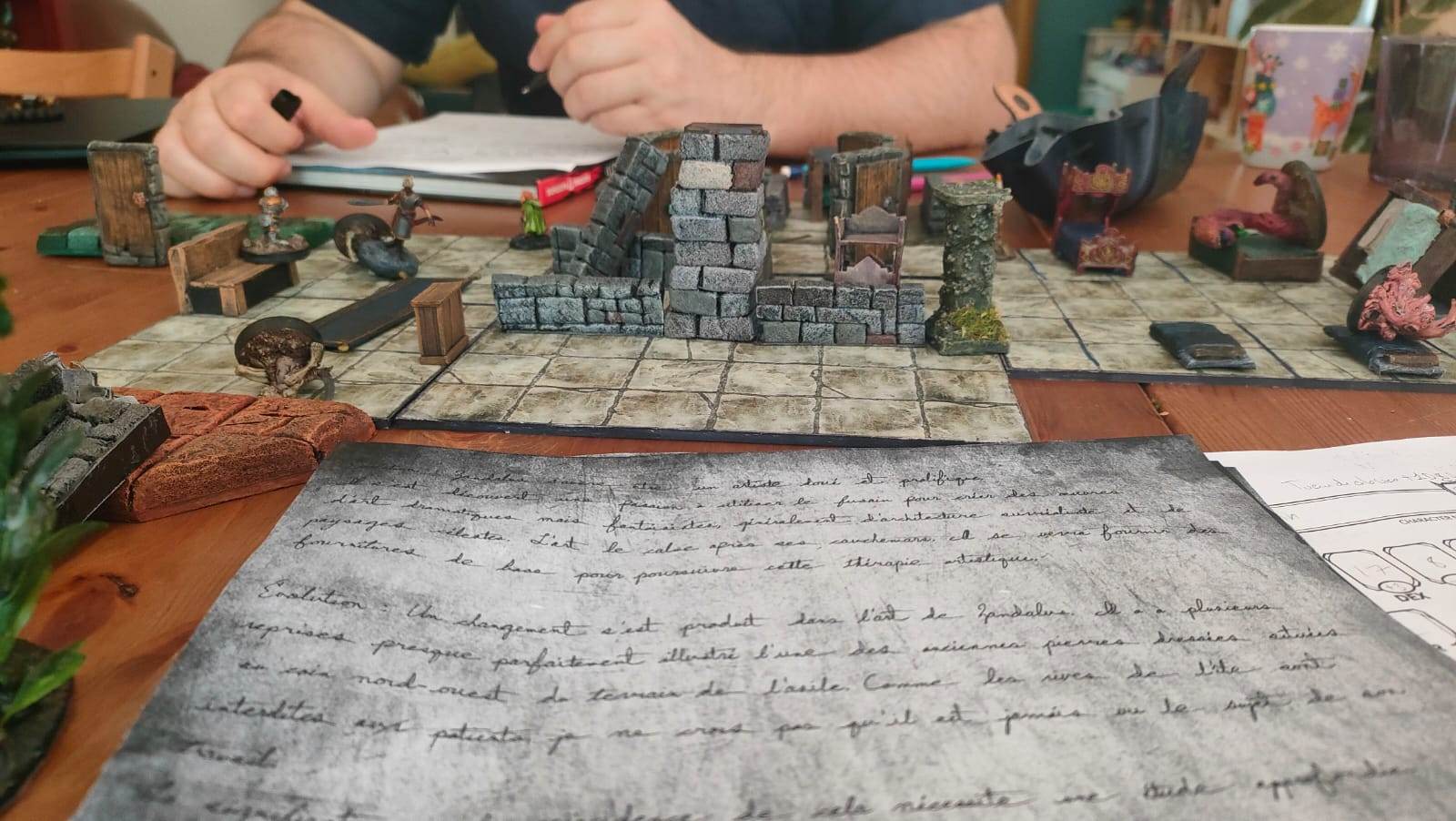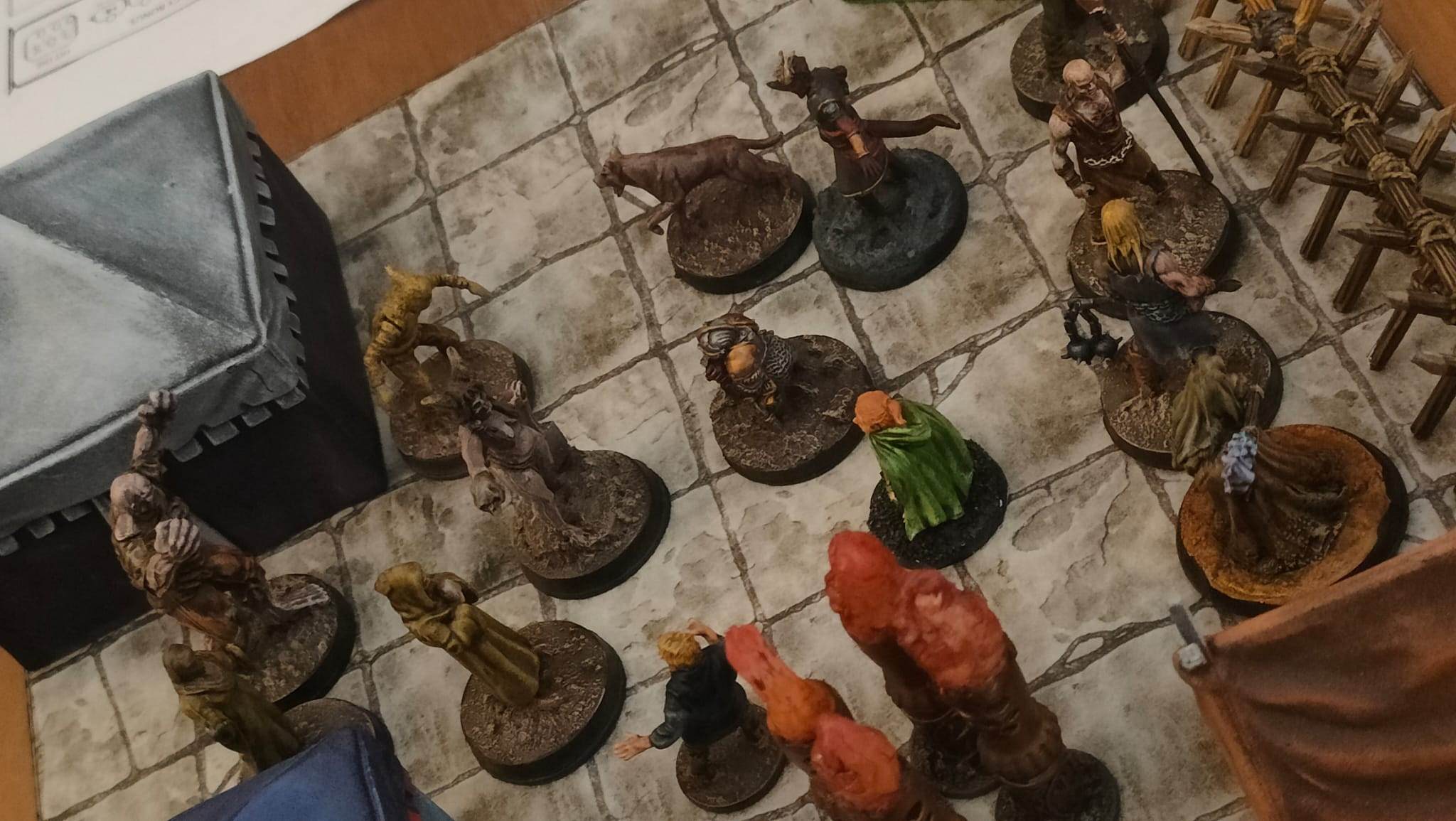 Nos joueurs, arrivés devant la porte du repaire des Apotres en Orpiment, décident de rentrer à la chapelle pour un repos bien mérité (et passer niveau 3). Ils retraversent la salle où ils ont rencontré Yarrick, le petit garçon qui animait des couvertures. Ensuite, ils repassent par la grande pièce avec les torrents de sang, avançant avec précaution pour ne pas être emportés à nouveau.