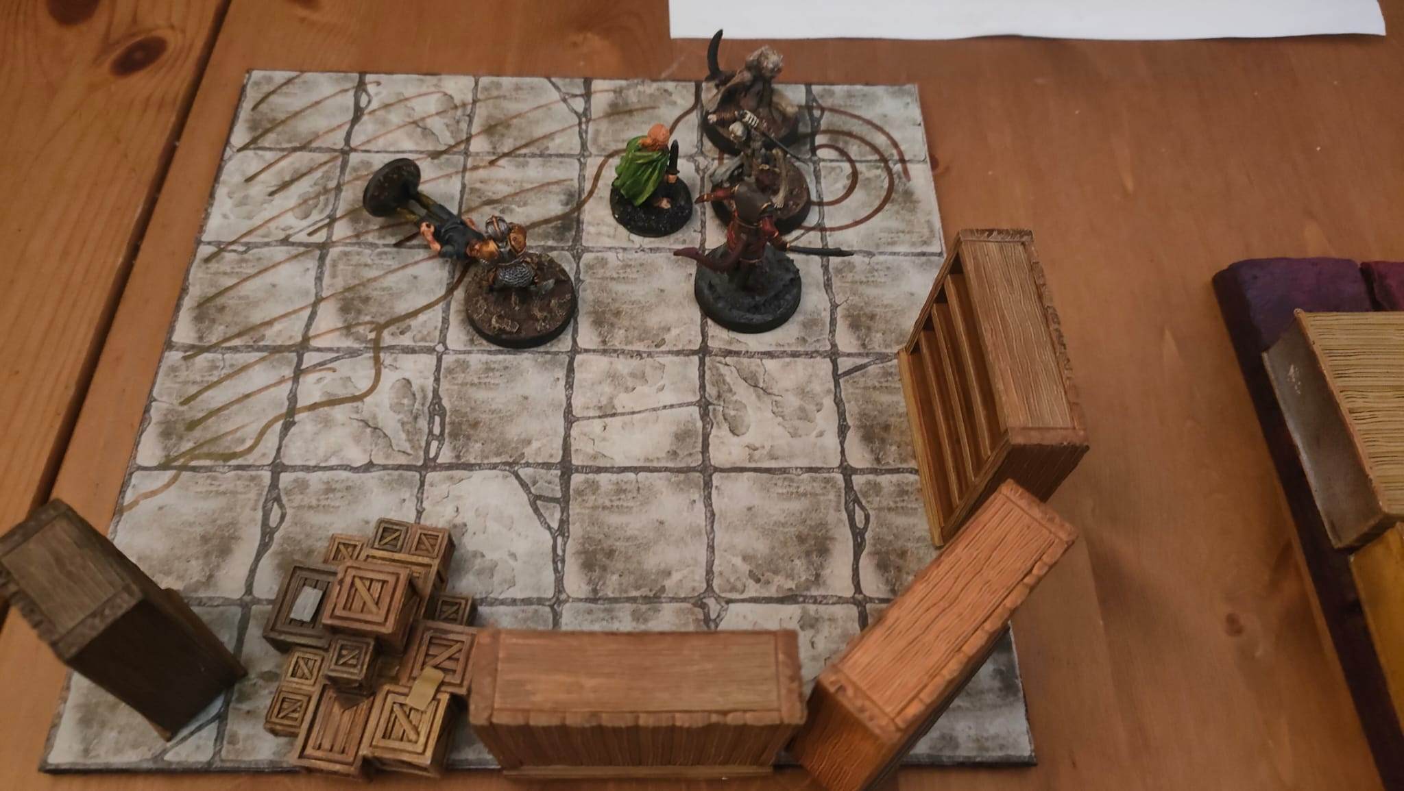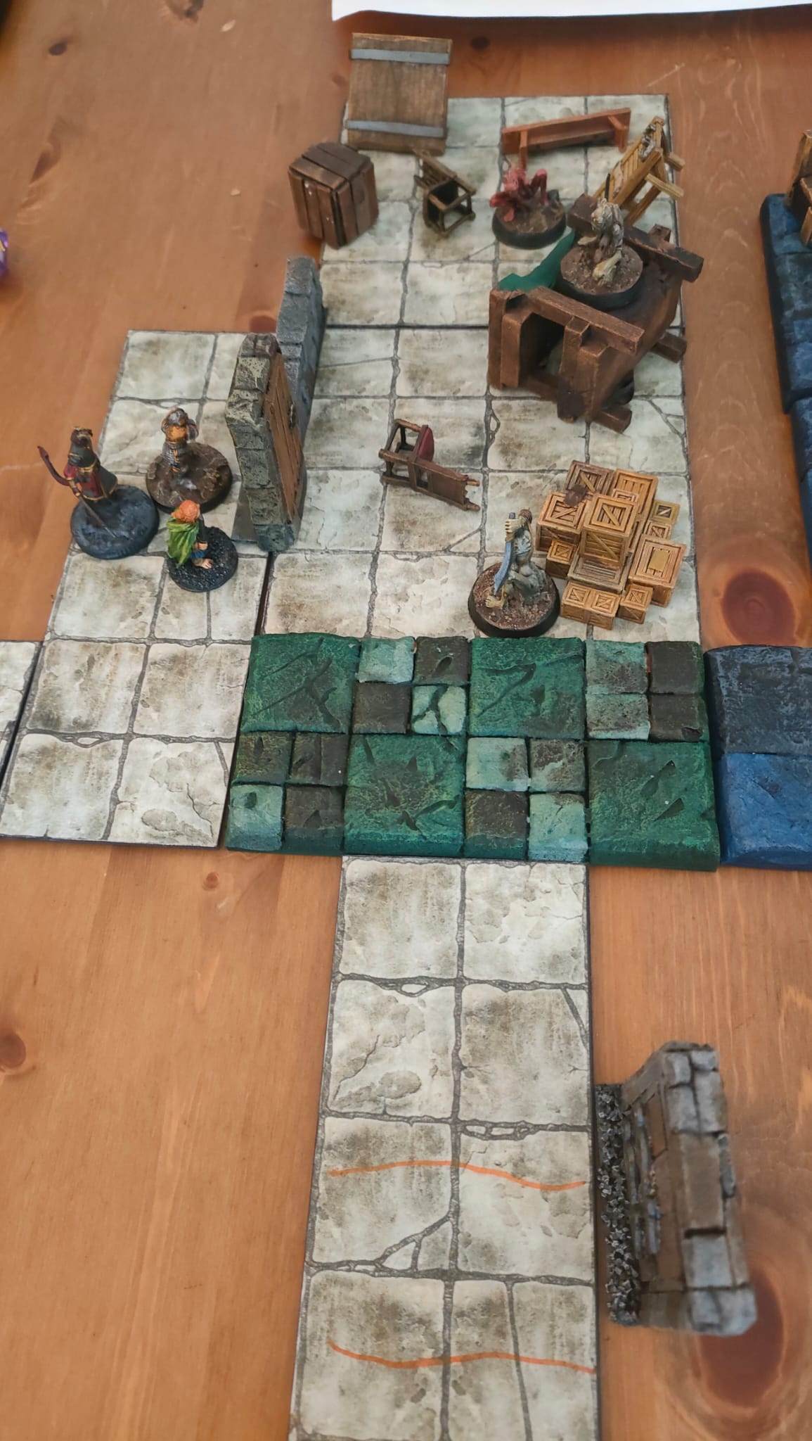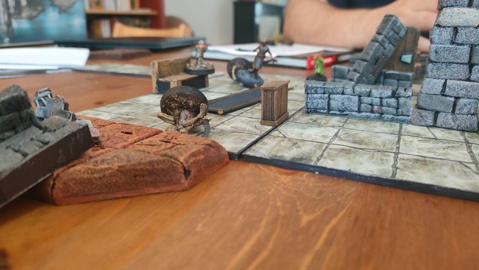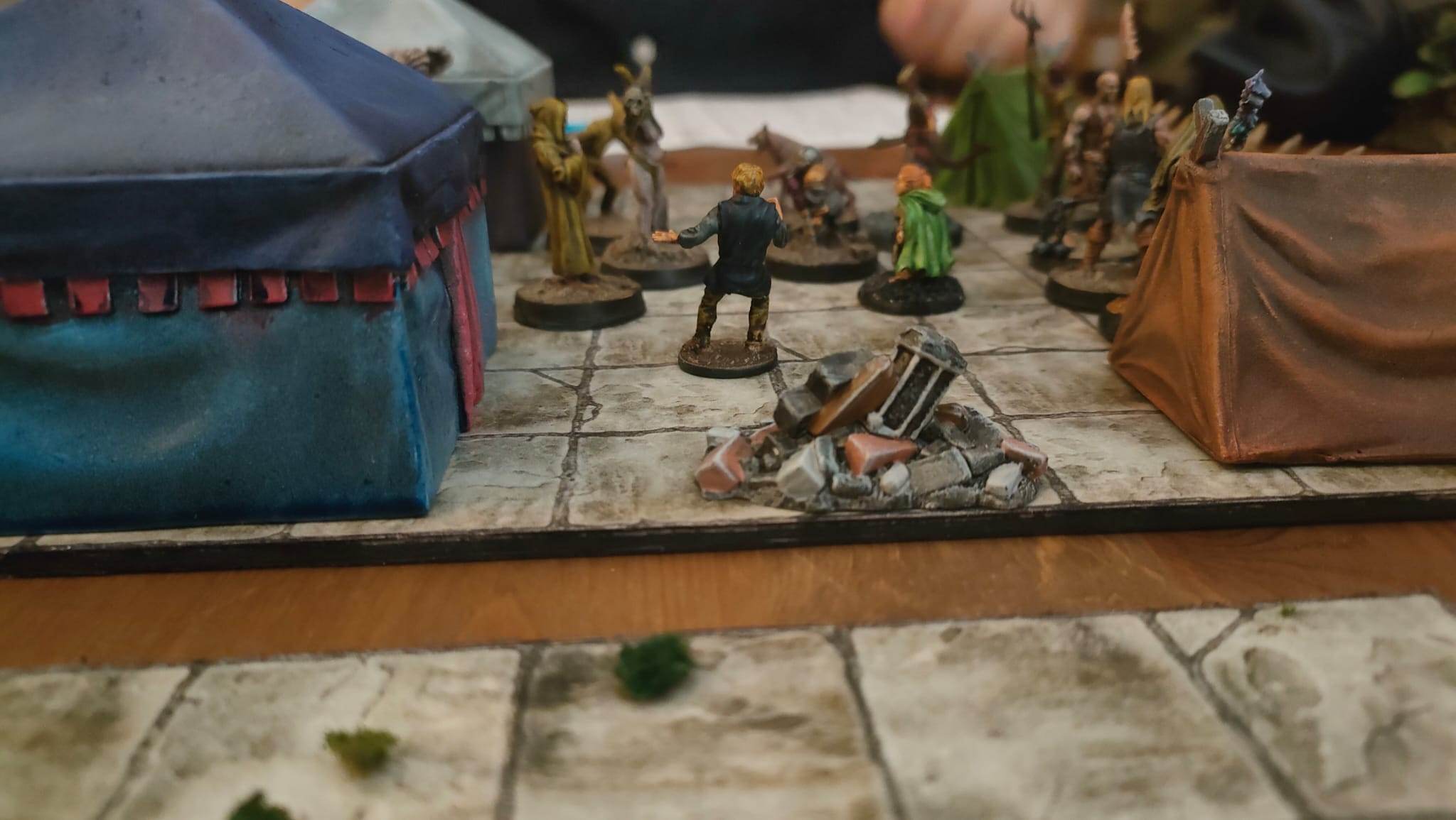 Nos joueurs, arrivés devant la porte du repaire des Apotres en Orpiment, décident de rentrer à la chapelle pour un repos bien mérité (et passer niveau 3). Ils retraversent la salle où ils ont rencontré Yarrick, le petit garçon qui animait des couvertures. Ensuite, ils repassent par la grande pièce avec les torrents de sang, avançant avec précaution pour ne pas être emportés à nouveau.