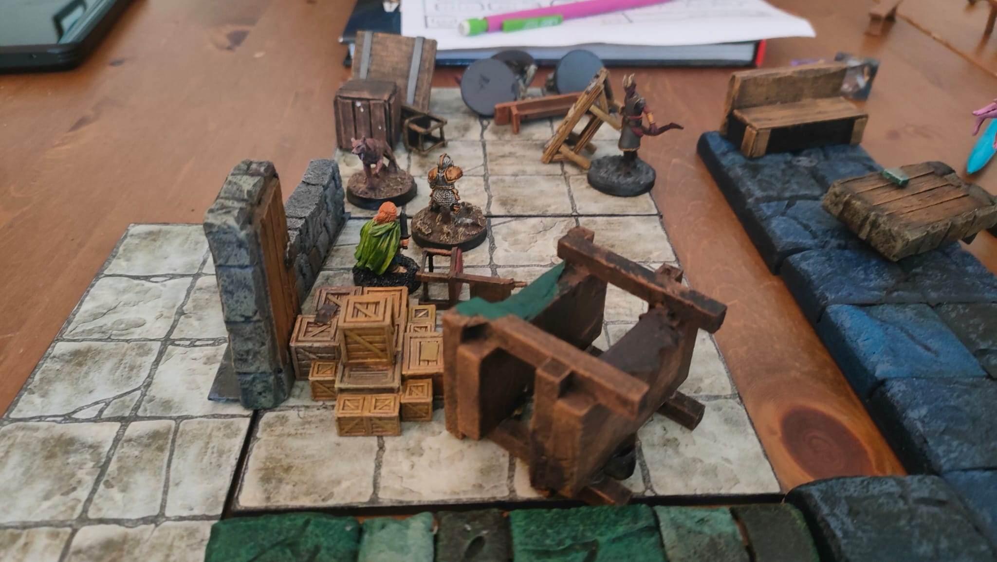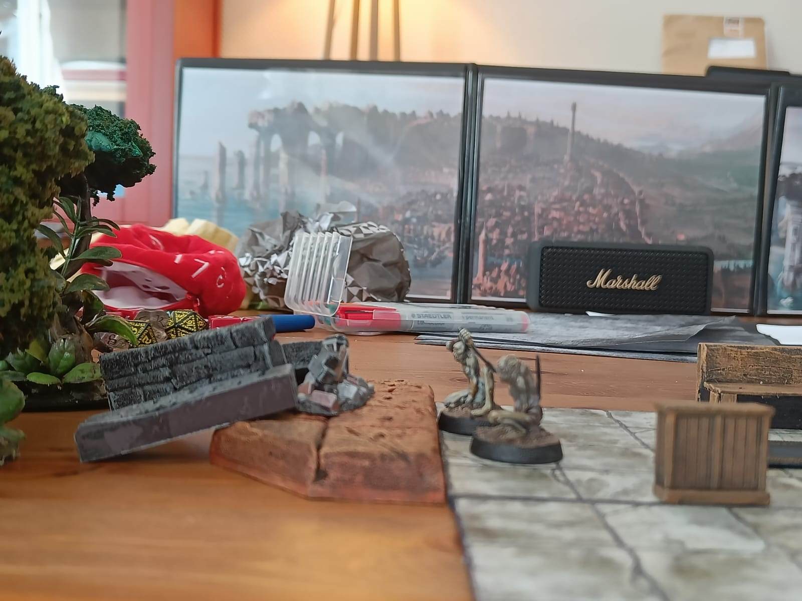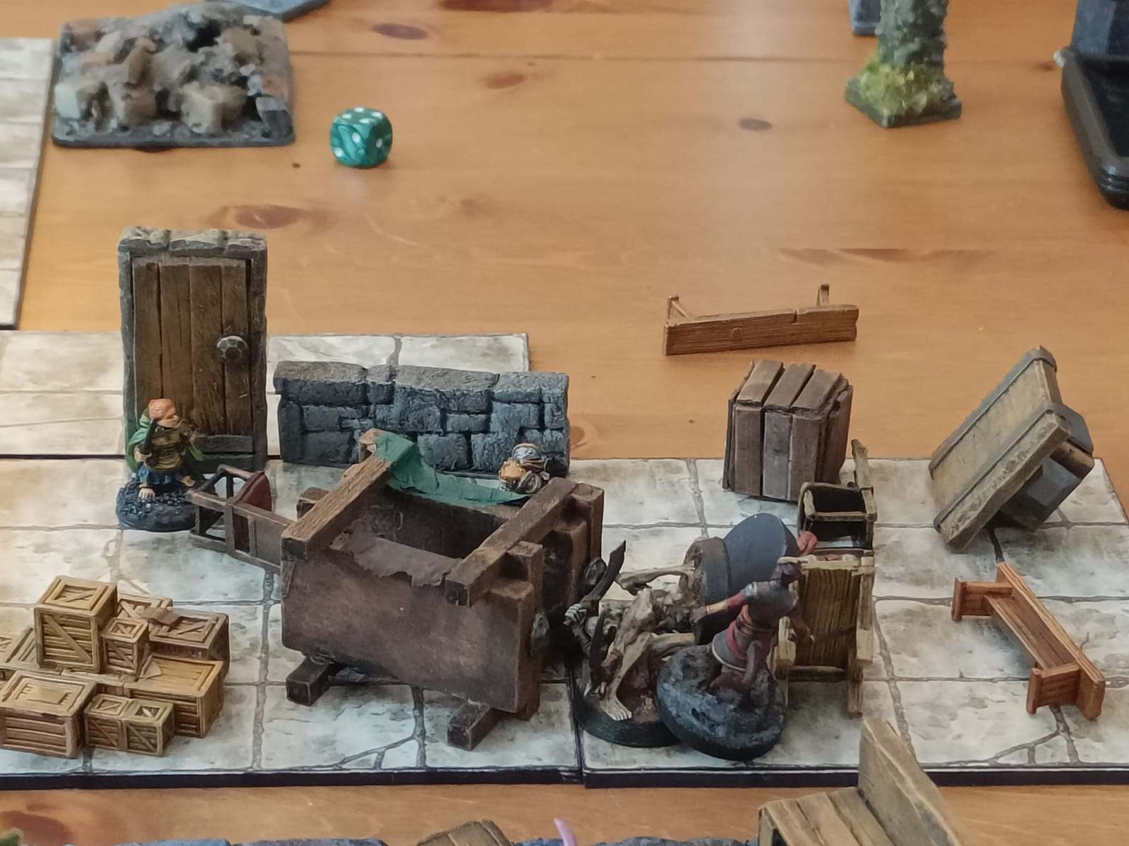 Les joueurs les mettent en garde contre les monstres derrière cette barricade et leur indiquent où trouver d'autres meubles.