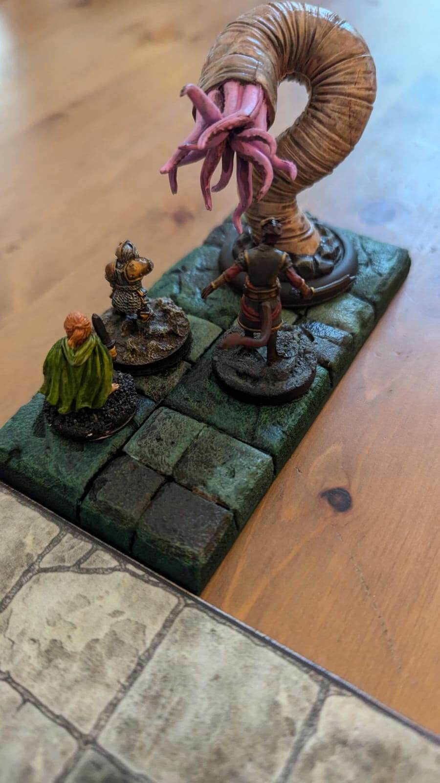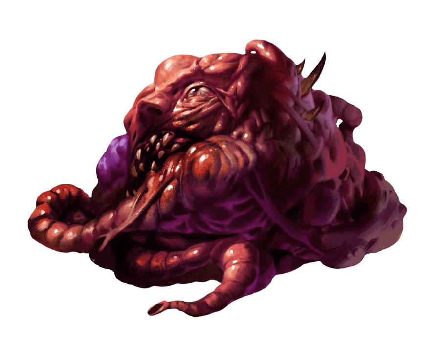 Du plafond tombe un amalgame de chair, d'organes et d'os qui génère des tentacules attaquant les personnages.