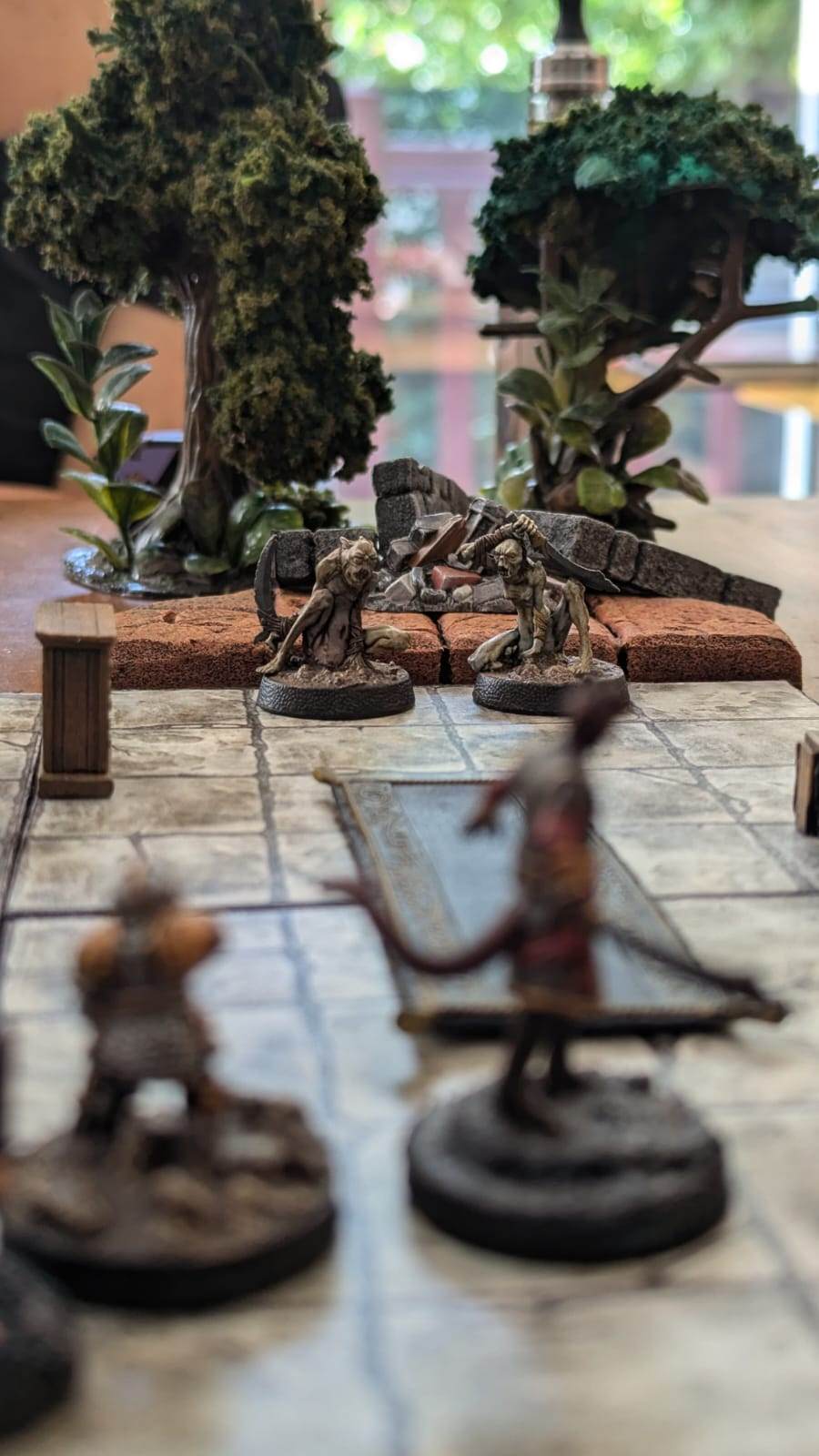 Après en être venus à bout, ils hésitent entre sortir dans la cour intérieure ou continuer dans le couloir. Robin jette un morceau de bras d'une victime des goules dehors et entend aussitôt des pas précipités se ruer vers la chair. Il comprends que la créature a beaucoup trop de pattes pour qu'il ait envie de risquer de l'affronter.